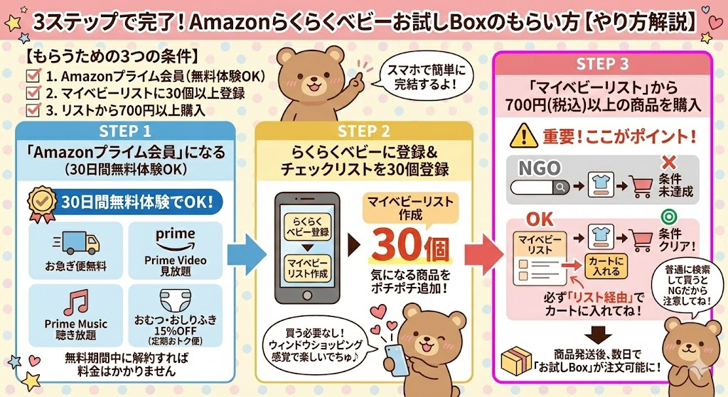 3ステップで完了!Amazonらくらくベビーお試しBoxのもらい方【やり方解説】