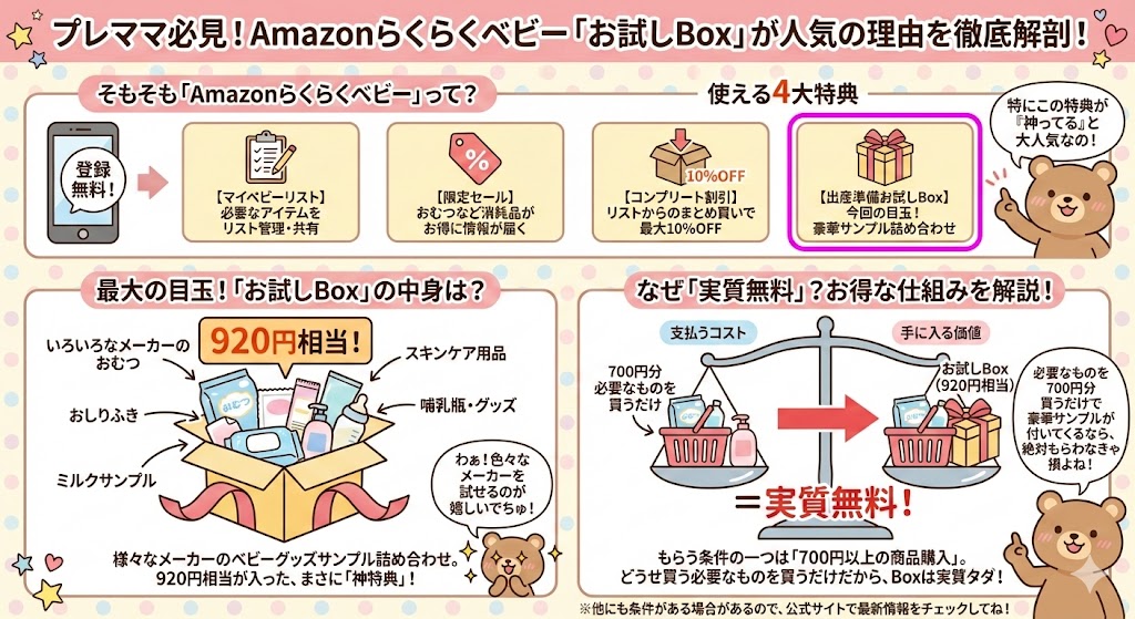この記事では、そんな大人気の「Amazonらくらくベビーお試しBox」について、