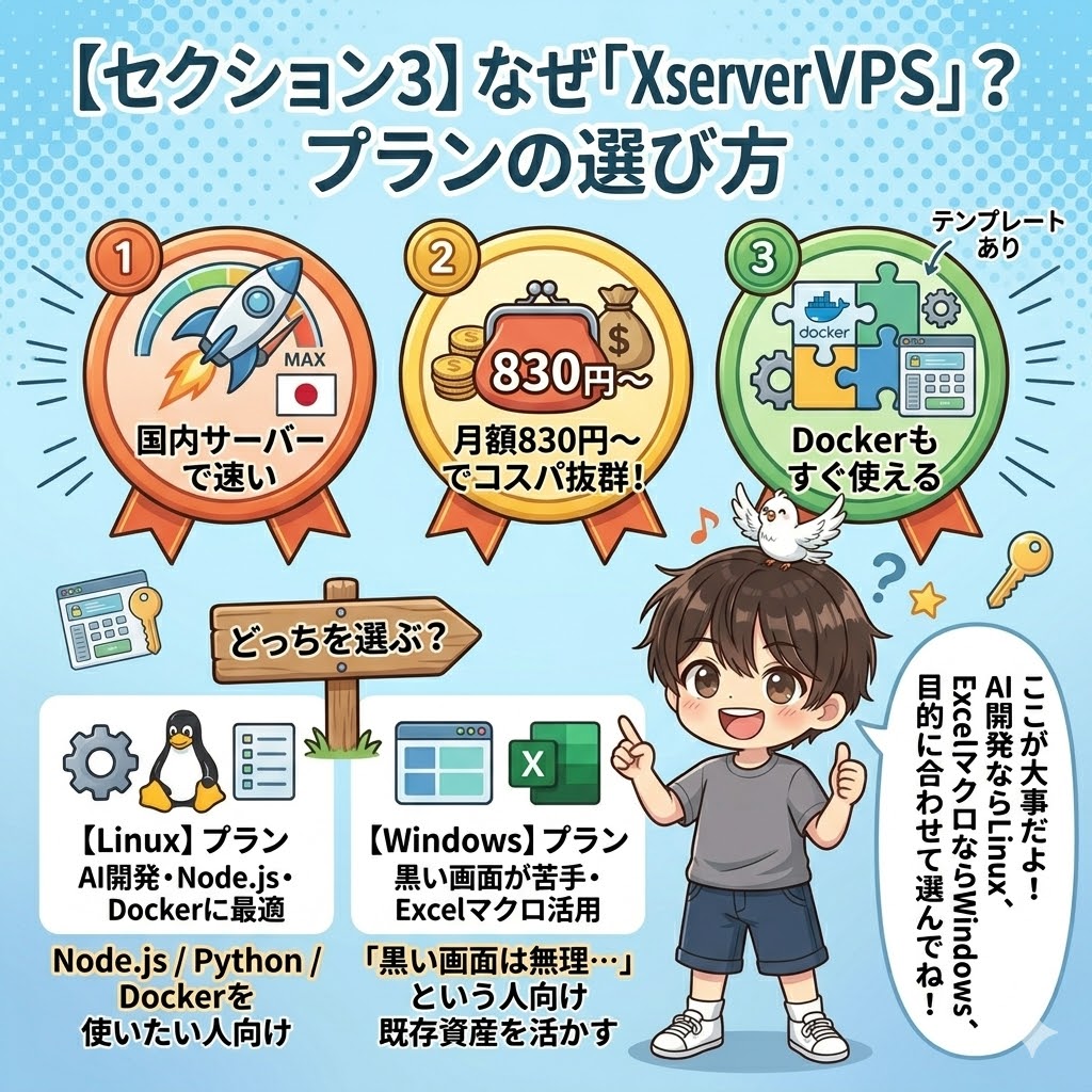 VPSサービスはいくつかありますが、XserverVPSを選んだ理由はシンプルです。